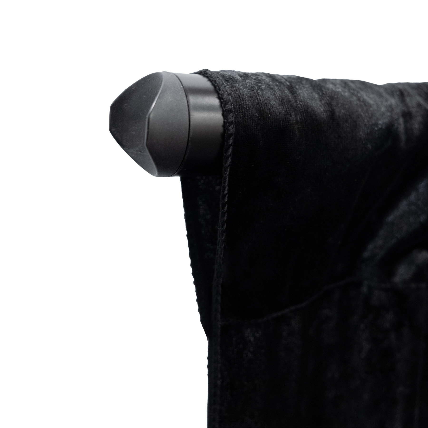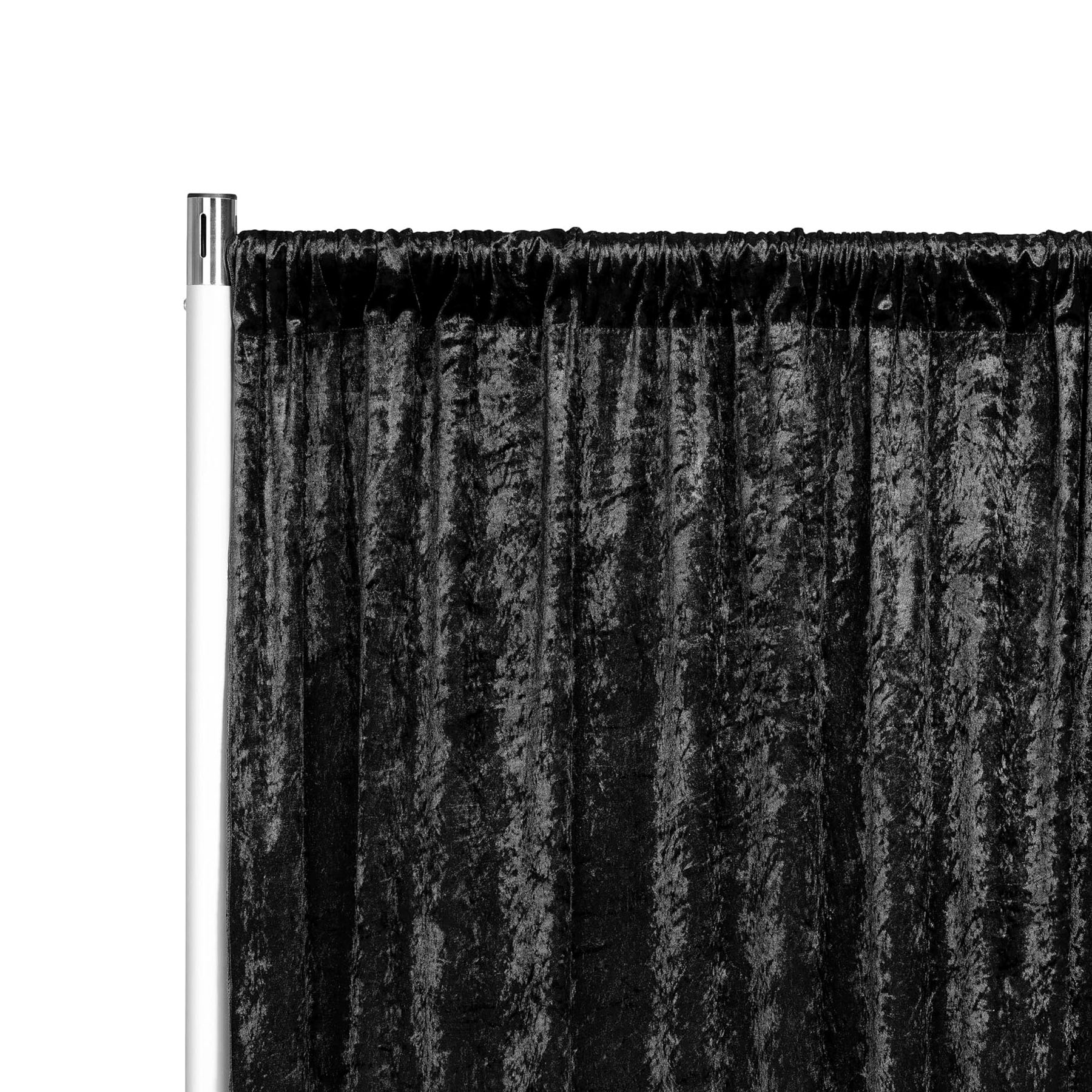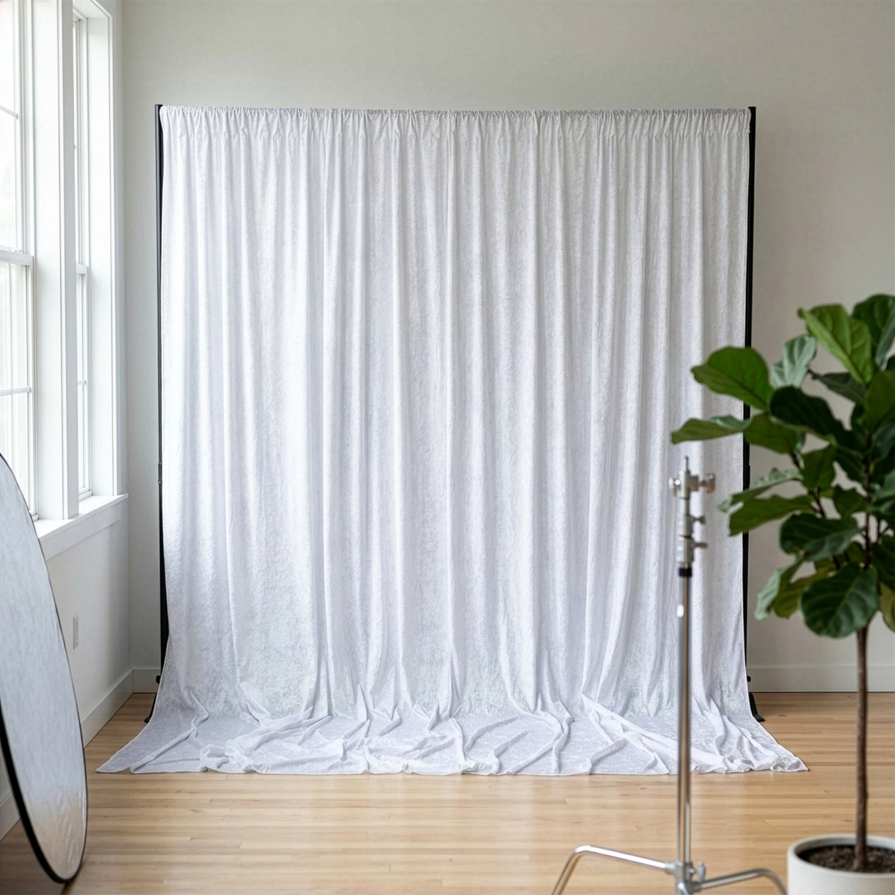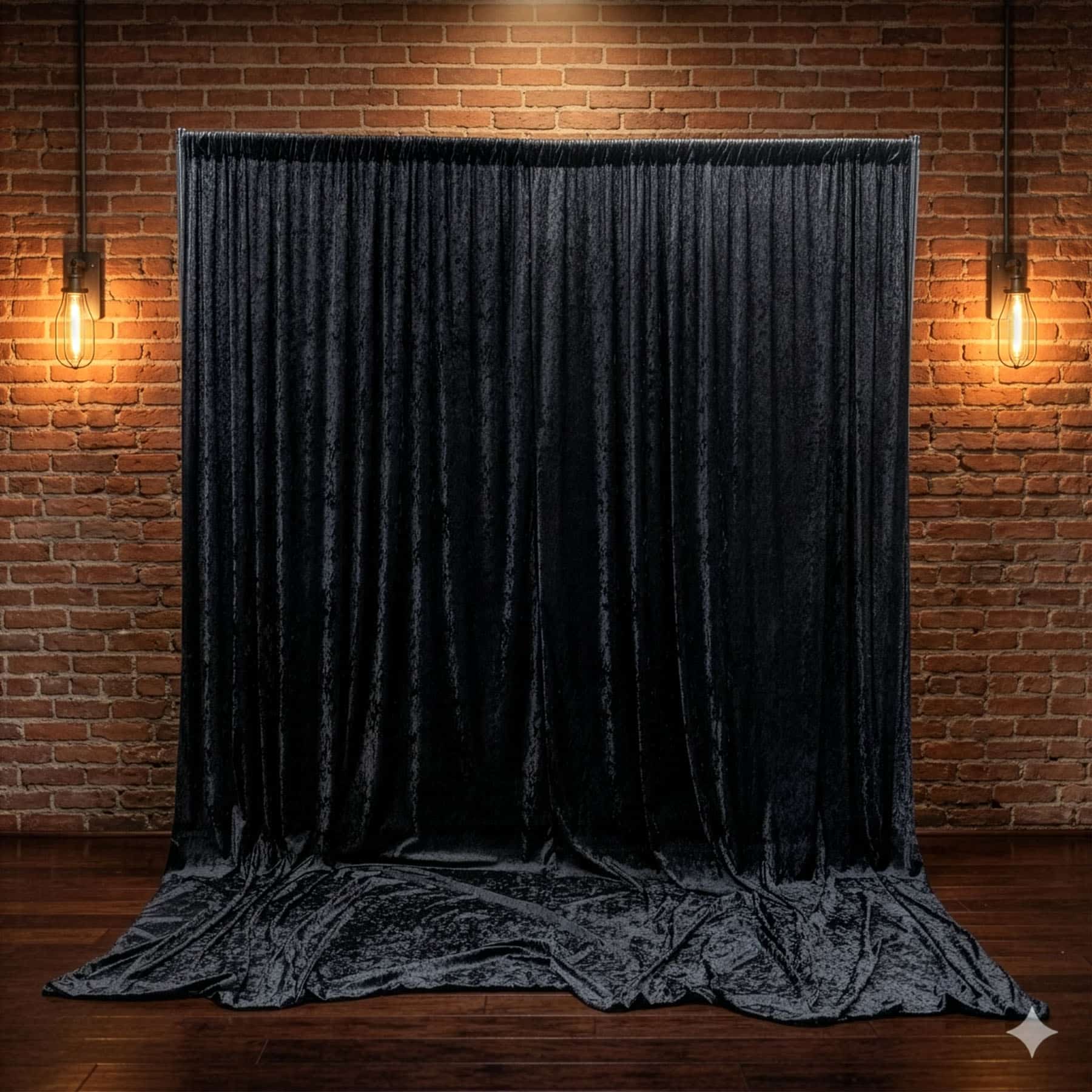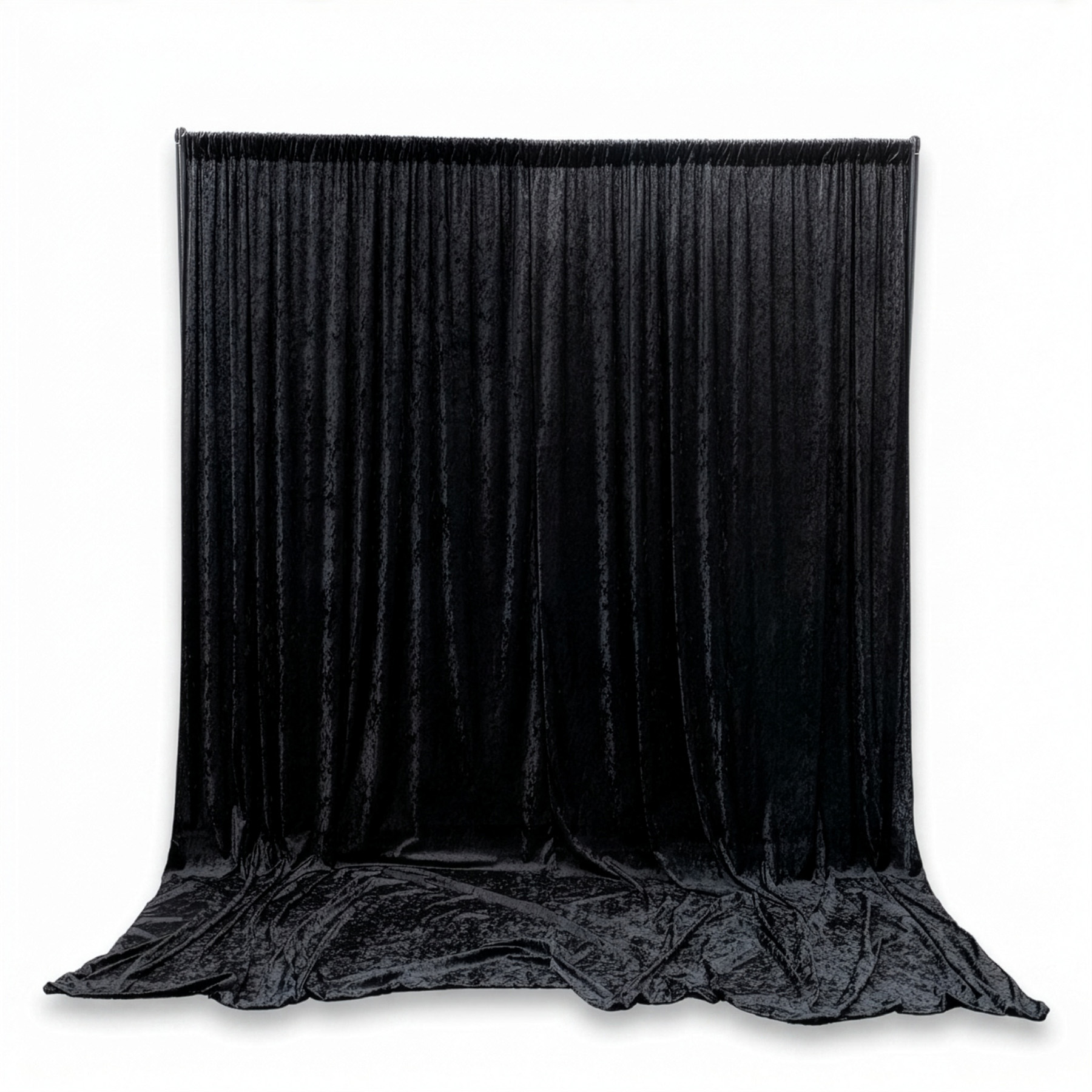 The curtain is made from single-sided crushed velvet and comes in a 3m x 3m flat size. It hangs via a sewn rod pocket, so setup is straightforward on a suitable backdrop stand. Black and White are offered as separate SKUs within the same listing, giving you two very different styling directions depending on the look you want to create.
