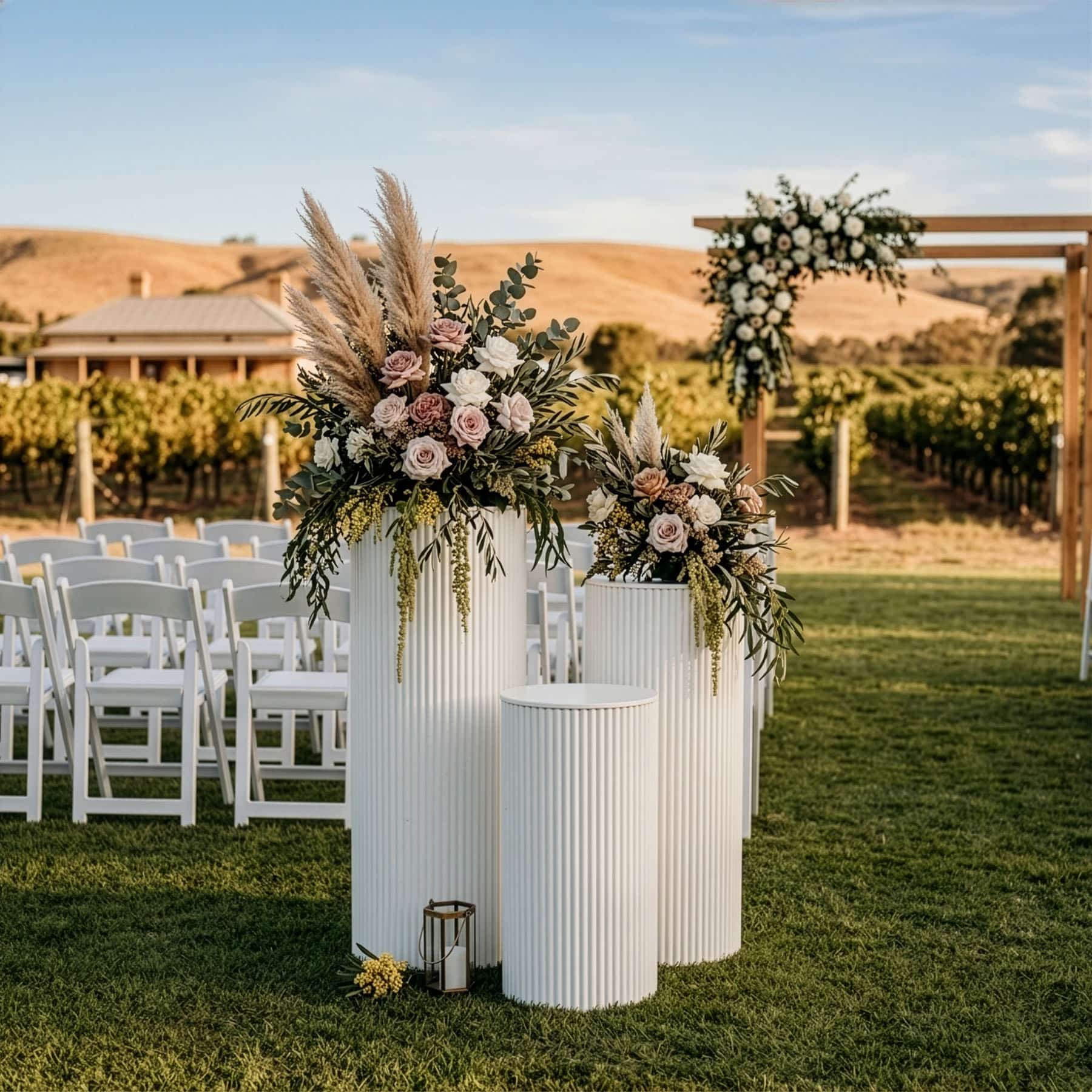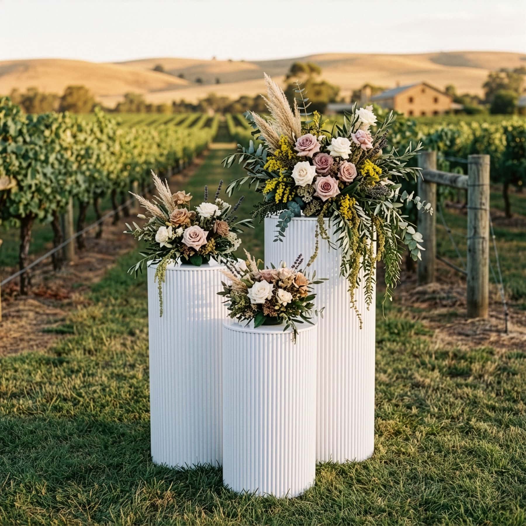 When you need more than a single display stand, this ripple plinth set gives you three coordinated plinths in one practical package. The varied heights make it easy to build a layered display for florals, cakes, welcome areas, signing tables, product merchandising and other styled spaces.