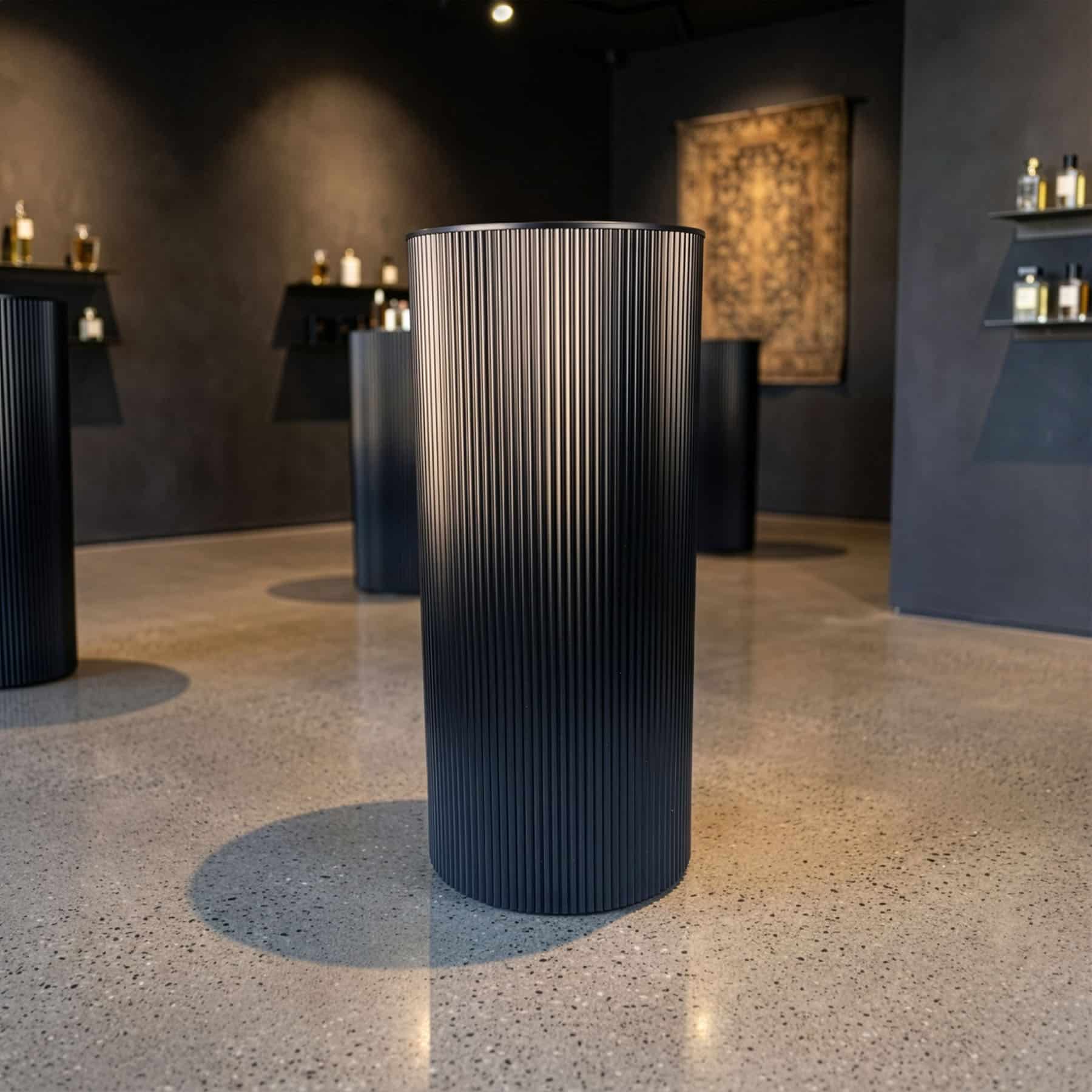 Made from metal with a gloss finish, these plinths have a clean fluted profile that works across modern weddings, retail fit-outs, venue styling and home décor. The tops are flat, making them suitable for cakes and display pieces, while the hollow construction keeps the set lighter and easier to handle.