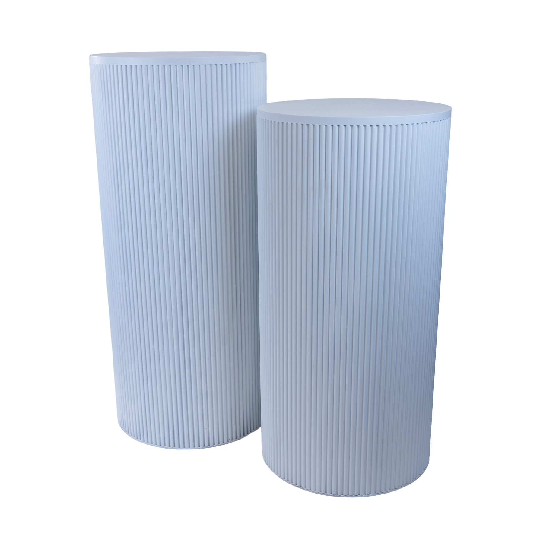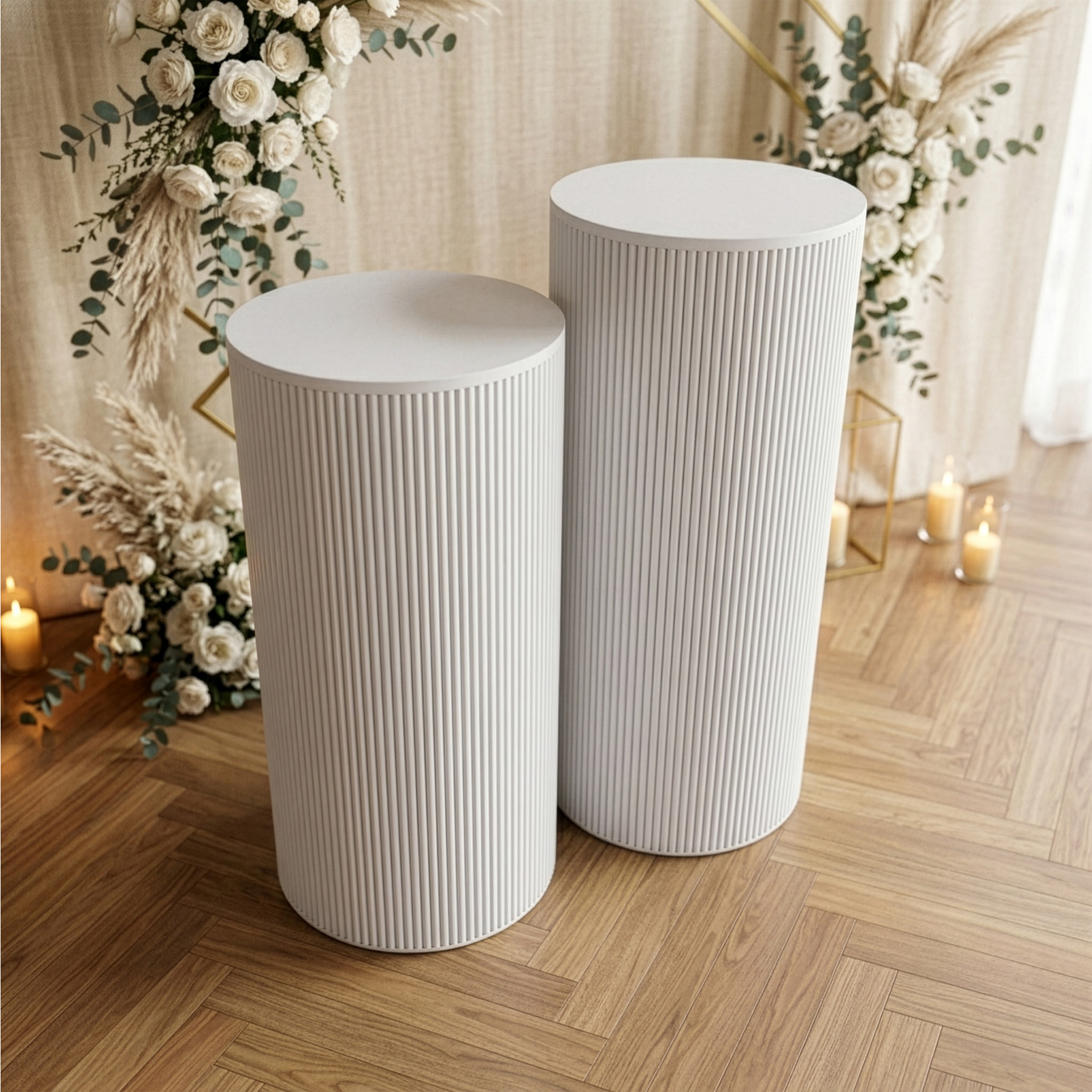 A well-chosen plinth can completely change how a display comes together, and this ripple plinth is made to do exactly that. With its cylindrical shape, satin white finish and textured ripple profile, it adds structure without feeling plain, making it a strong choice for event styling, retail merchandising and home display.