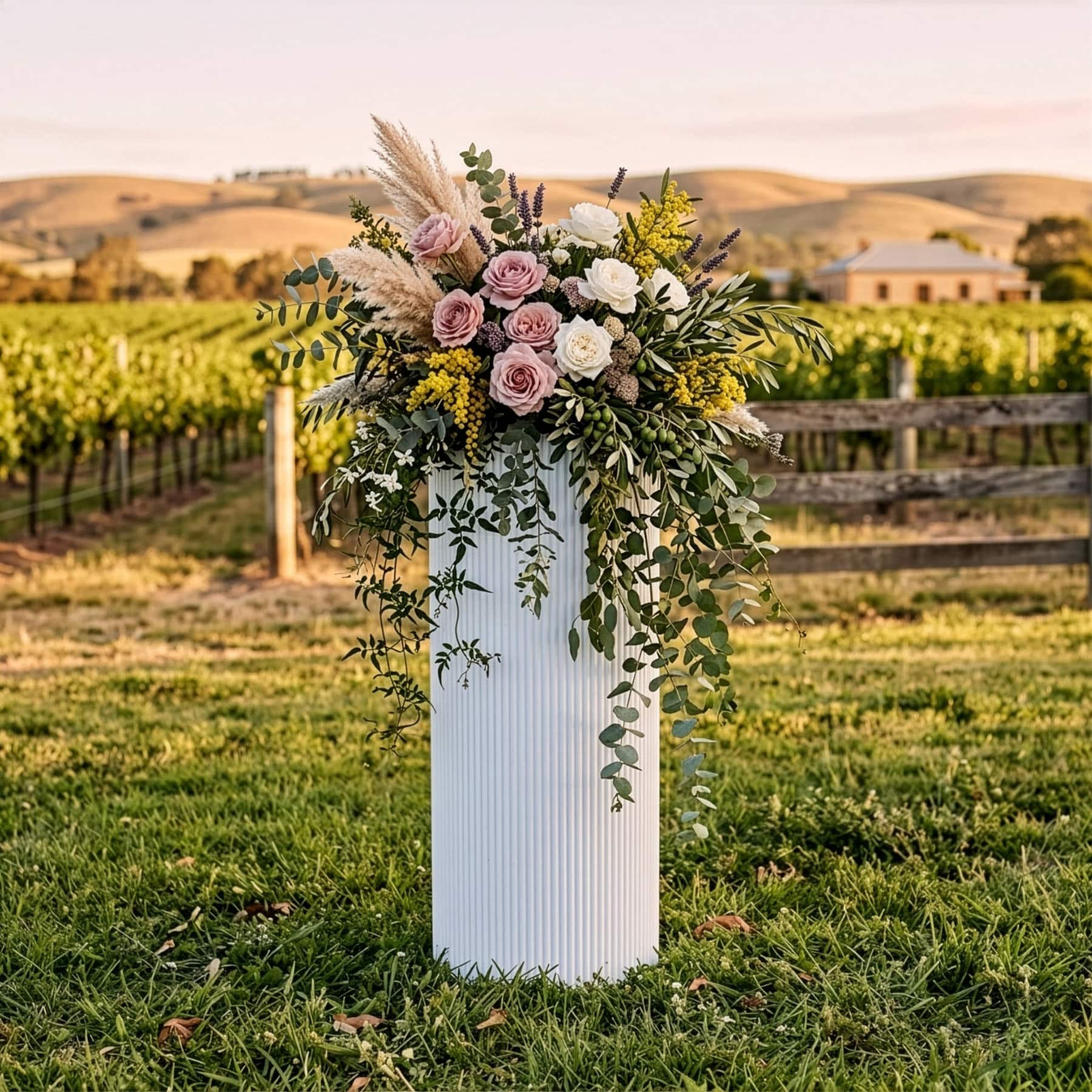 The two height options also make it easy to create a more layered look. Use one plinth as a standalone feature, or pair both sizes together to add depth and variation across your setup. The white finish keeps the overall look neutral enough to suit a wide range of colour palettes, florals and decorative accessories.